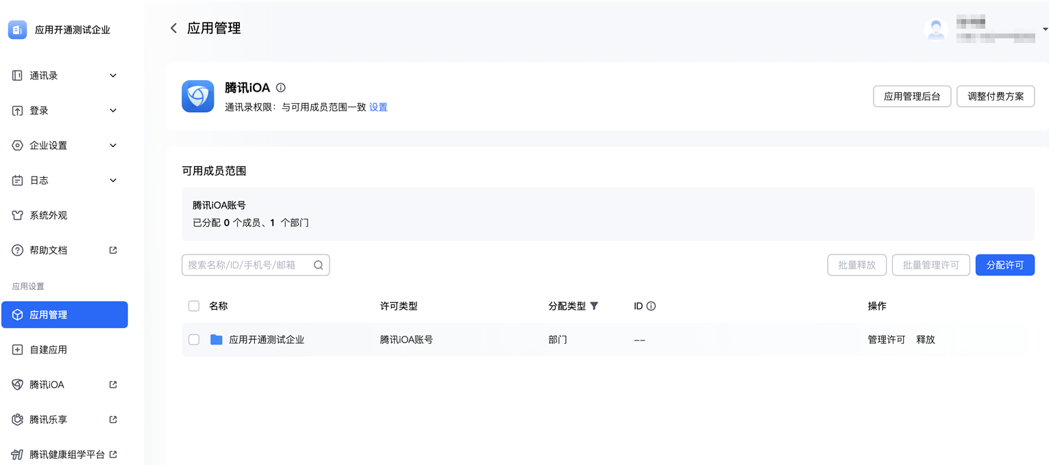 4. 配置完成,腾讯 iOA 获取到腾讯统一身份平台的应用许可,将自动同步人员信息至 iOA。
