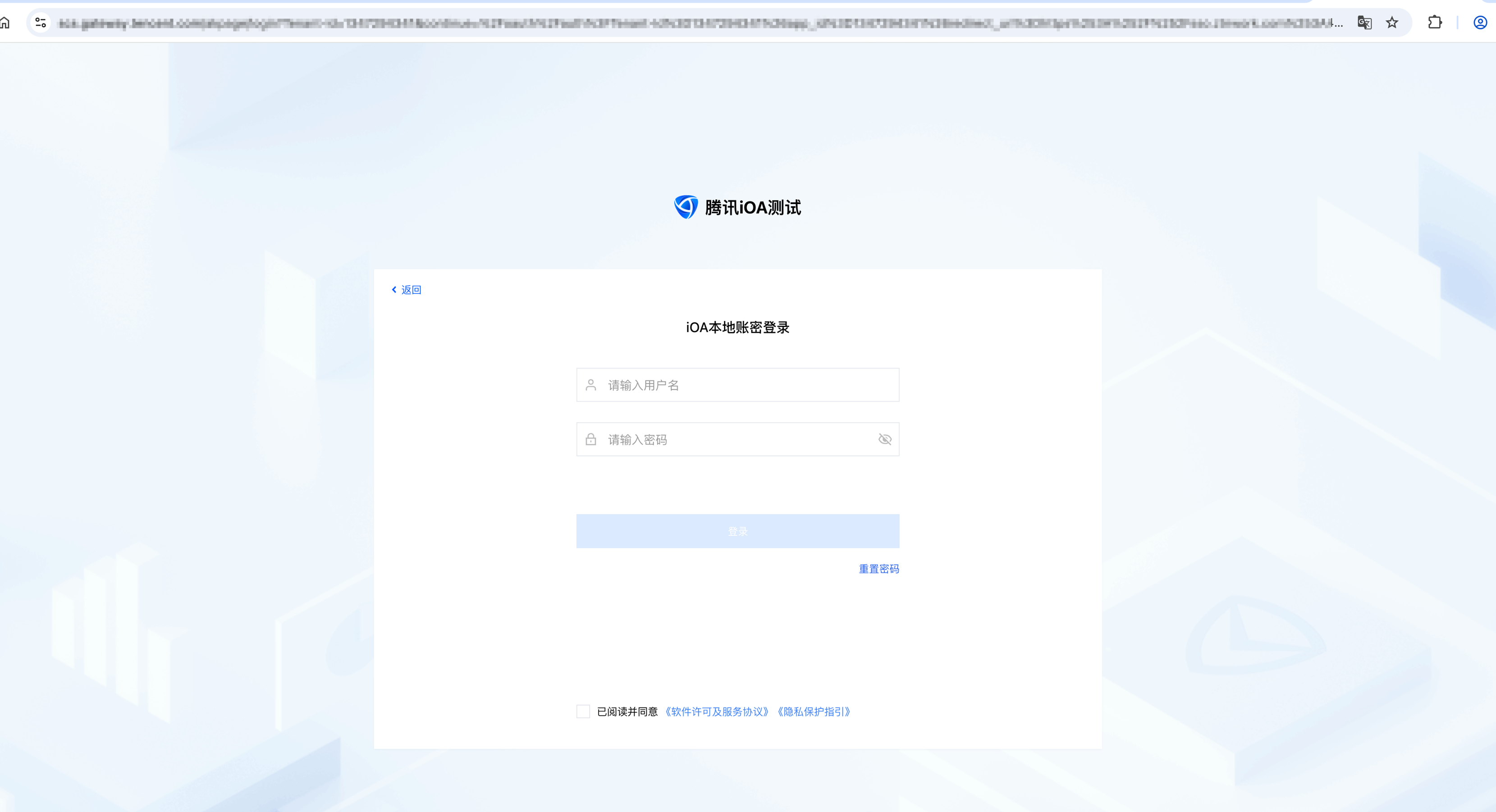 2. 打开浏览器,输入 iOA 零信任管理平台控制台上配置的前端地址,完成账户认证。