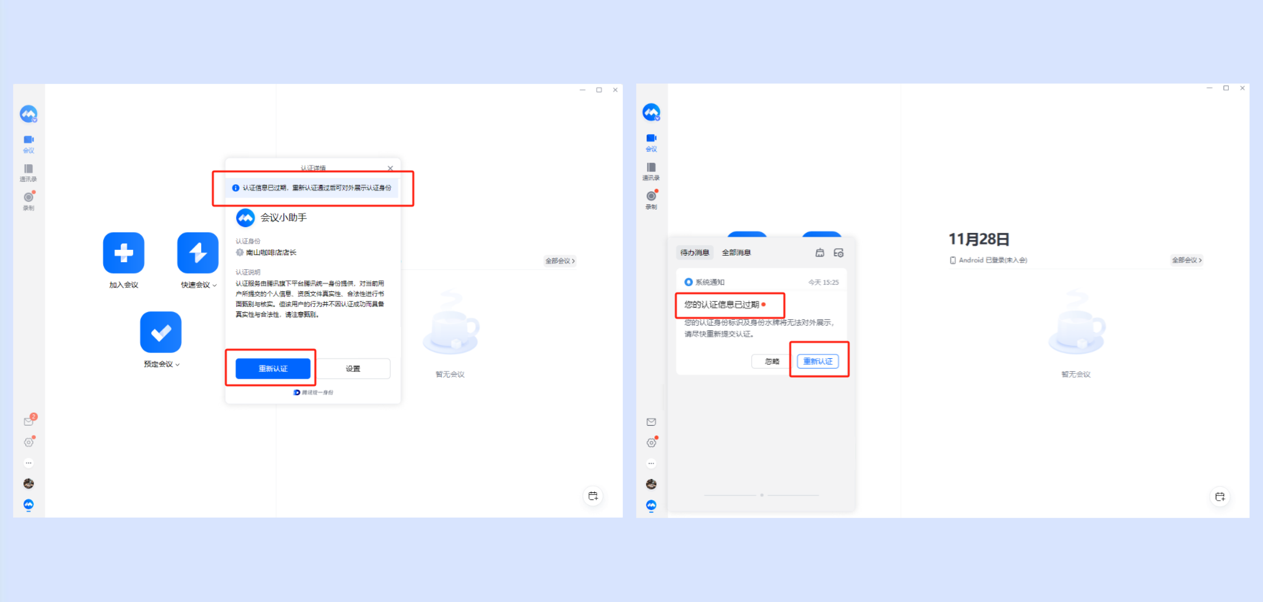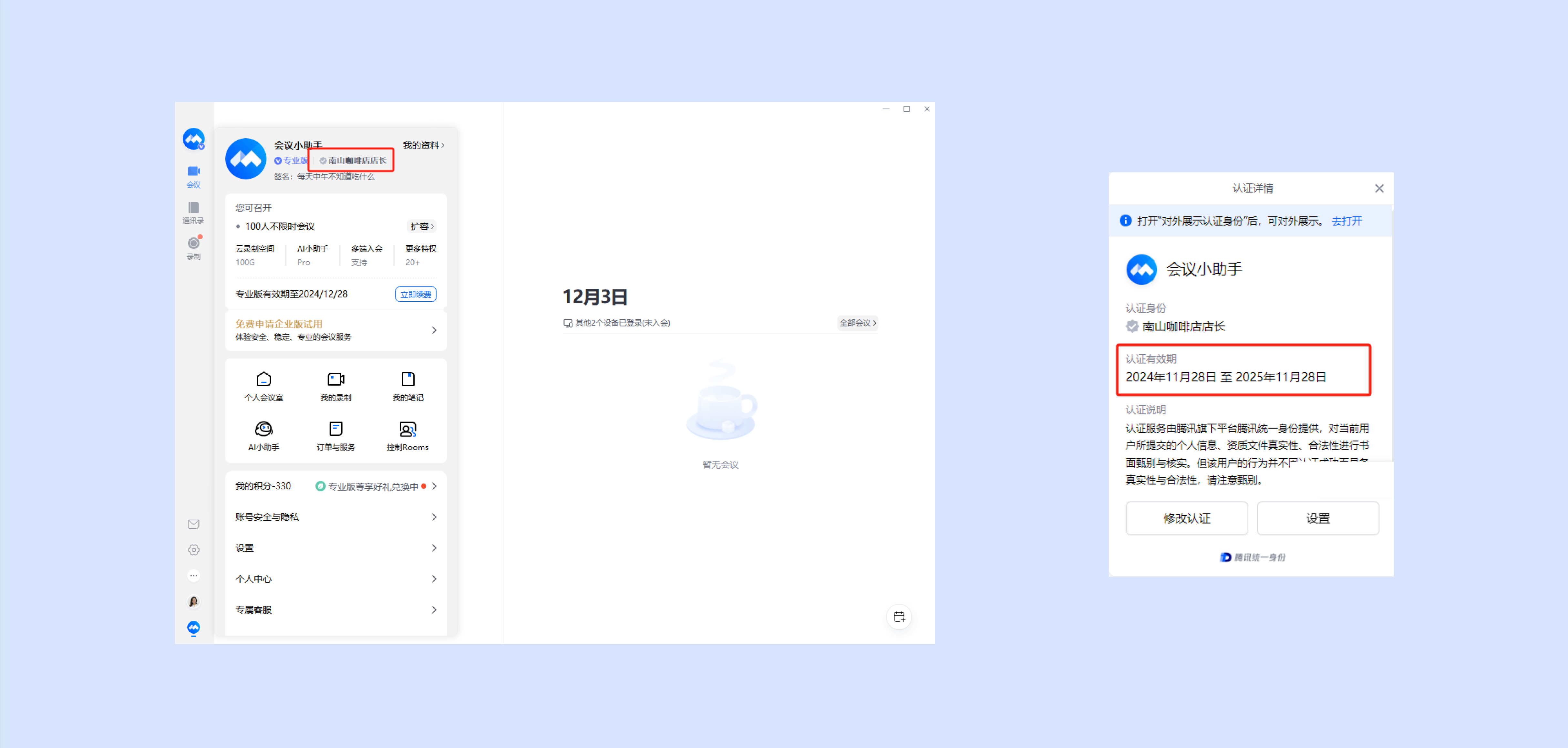 可以单击主面板头像 > 认证身份,打开认证详情页可查看认证有效期。