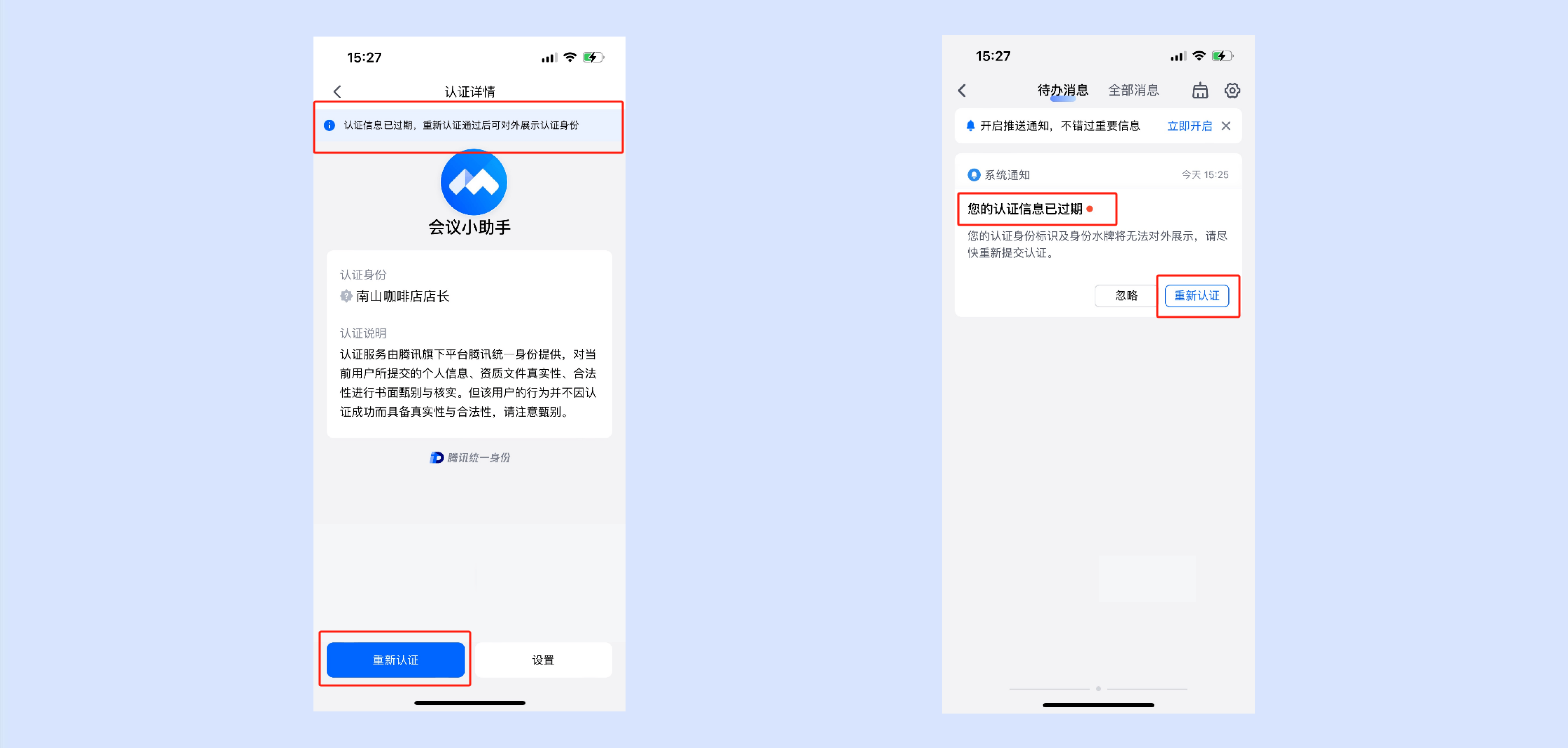 可以在收件箱收到失败/过期/失效通知后,单击重新认证。
