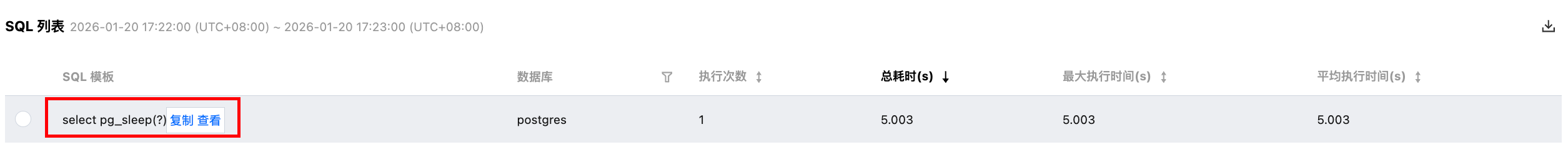 long_query_time 参数设置的值时,对应的 SQL 语句会在慢 SQL 分析页面进行统计。查看慢 SQL 分析