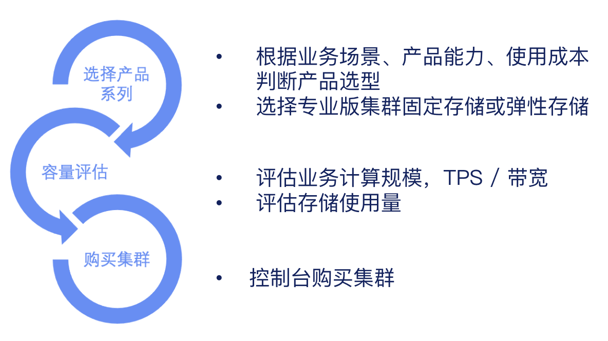 在明确所选择的集群类型之后,您需要评估业务实际运行所需的实例规格,包括计算规格和存储规格。