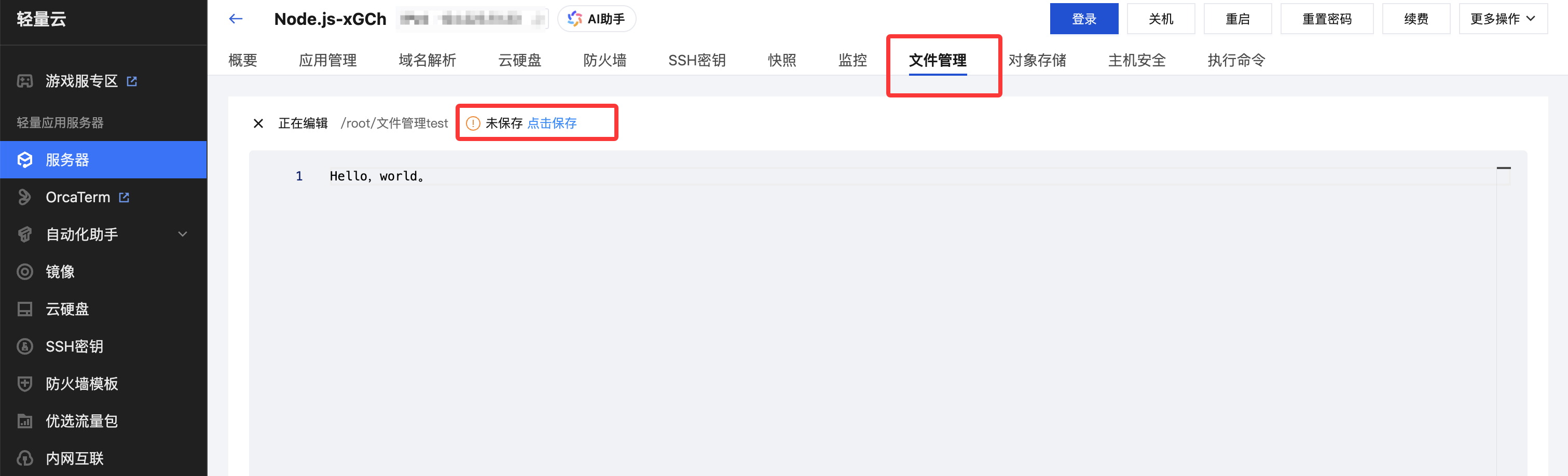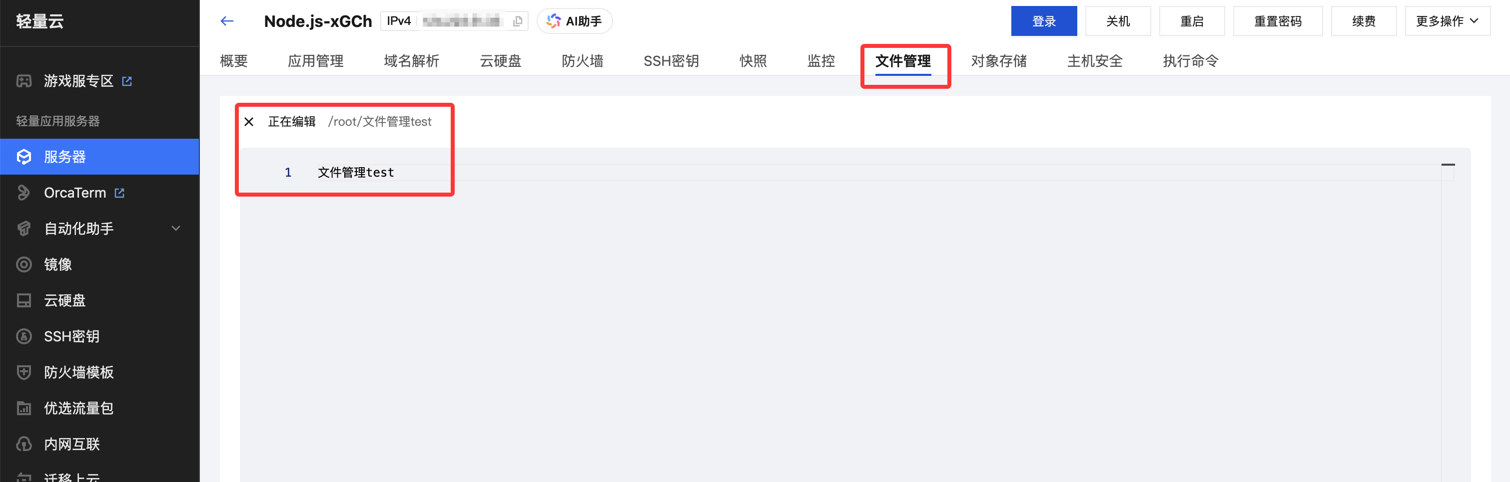 轻量应用服务器为您提供通过控制台直接访问和管理服务器内文件的能力。本文介绍如何通过文件管理功能,在轻量应用服务器控制台,进行服务器内文件的上传、编辑、复制、下载和删除等动作。