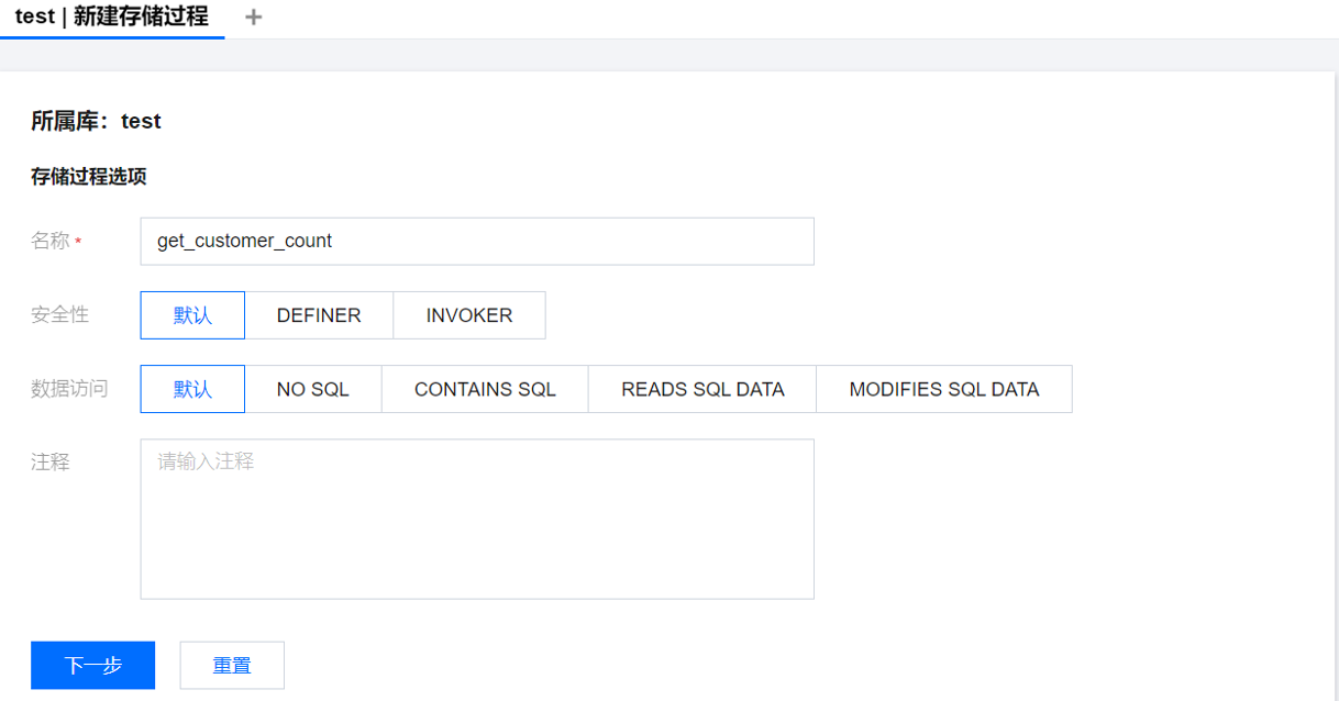 选择的数据访问类型不同,存储过程定义模板不同,请以实际界面显示为准。