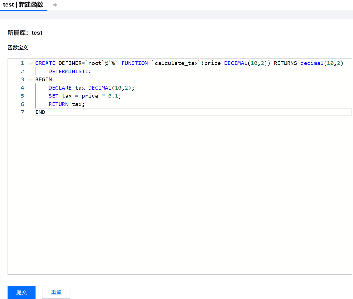 2. 在右侧编辑函数页面,编辑函数定义,单击提交。