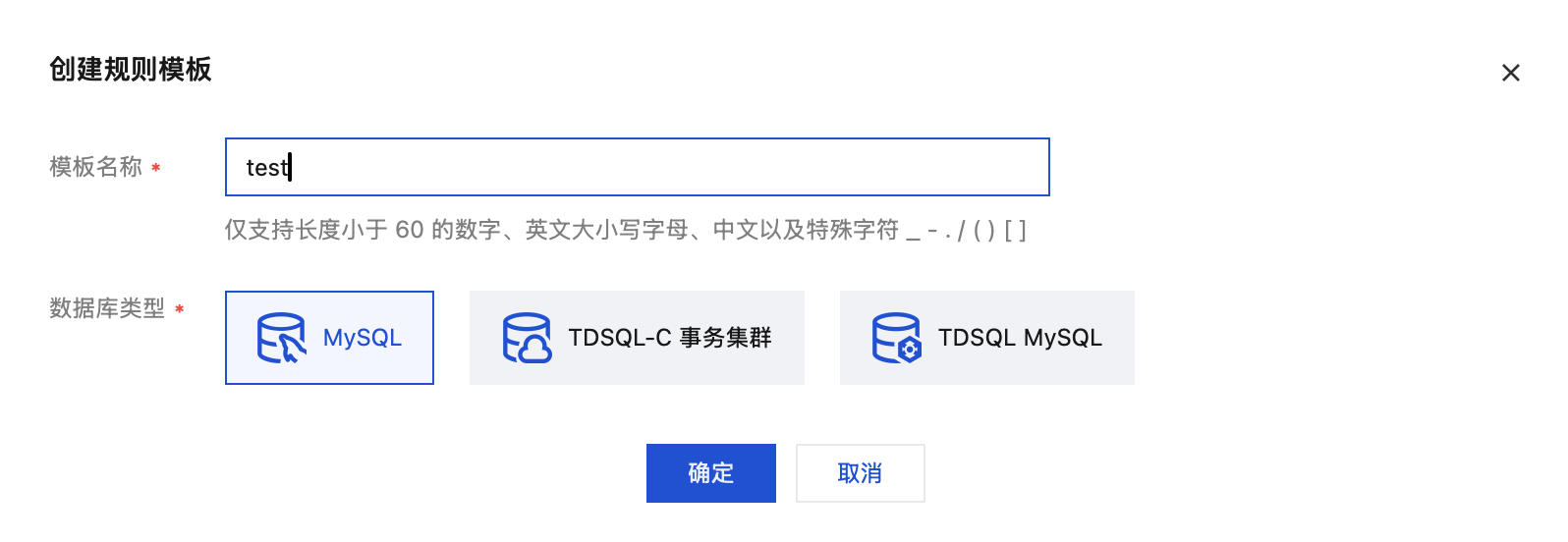 当前系统预设的规则模板为 MySQL 系统内置模板、TDSQL-C 公网全局规则模板、TDSQL MySQL 公网全局规则模板。