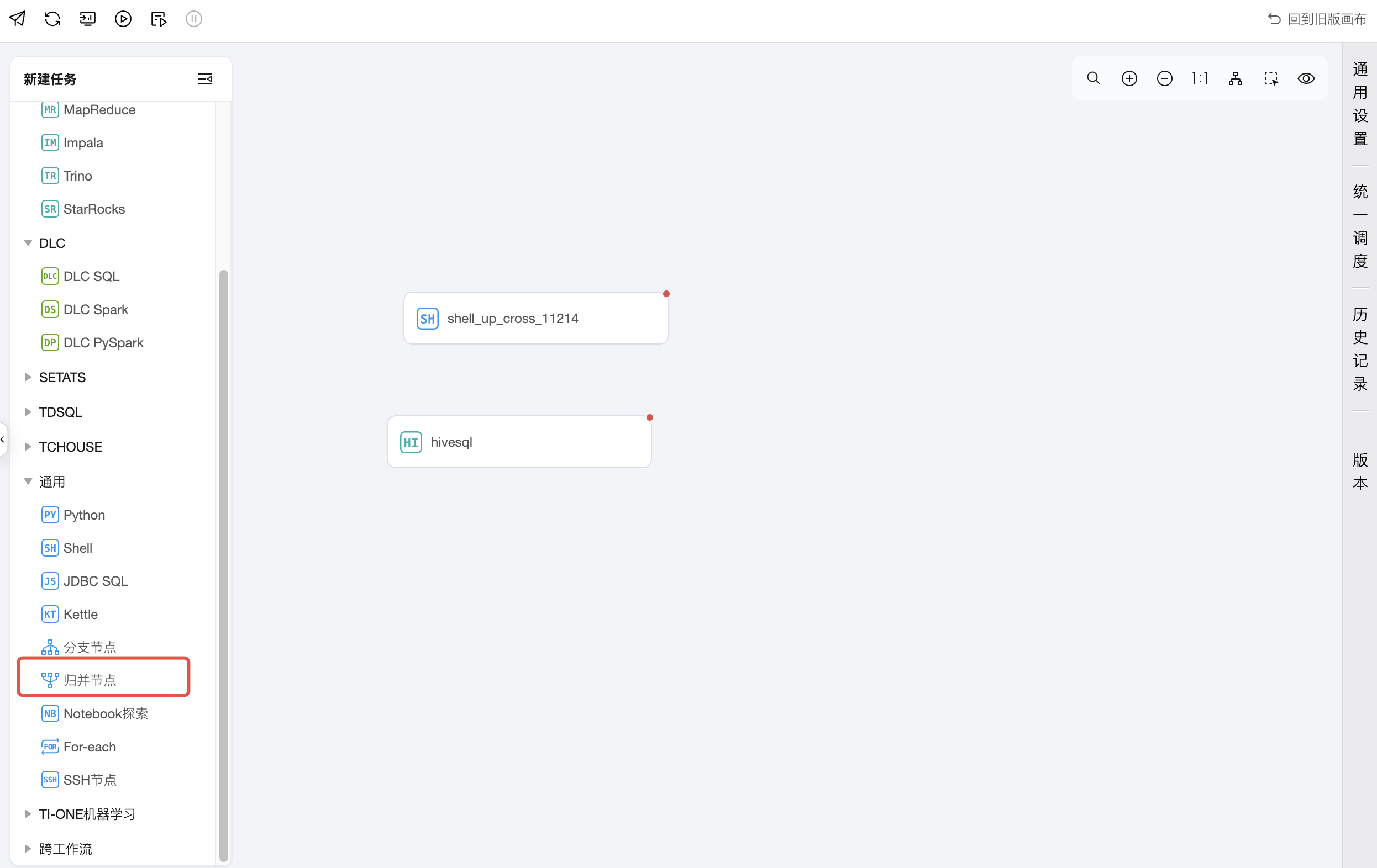 5. 在归并节点下游可以配置其他任务,从而归并成功以后触发下游。