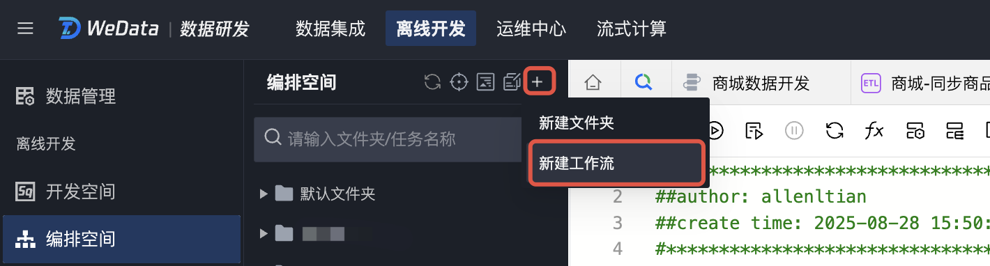 6. 单击工作流工具栏上的提交,选中当前工作流中的任务进行提交,在周期调度中可查看实例的状态。