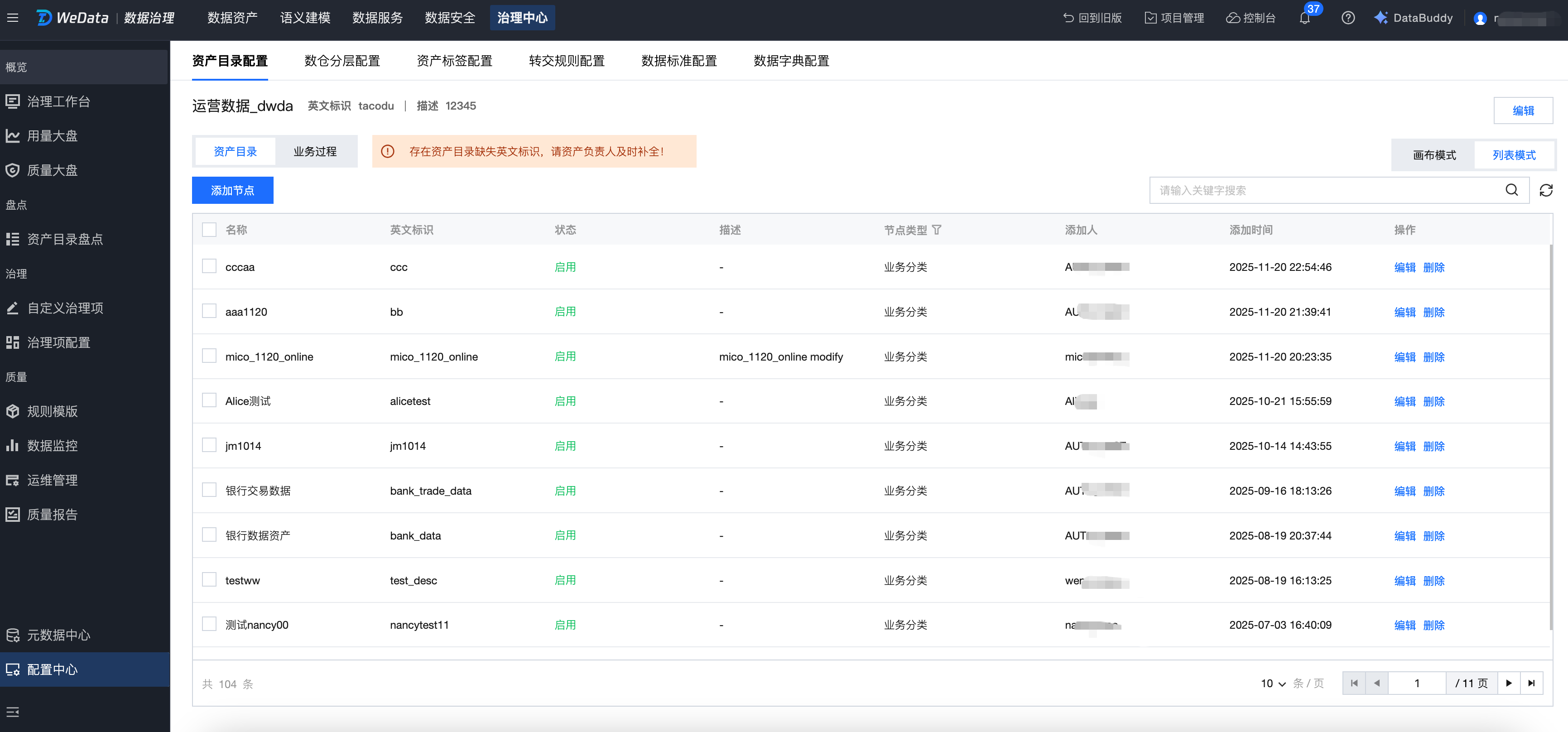 资产目录基于租户全局进行管理,主要目标是对数据按照业务分类和主题进行分域管理,形成具有层级结构的业务标签。