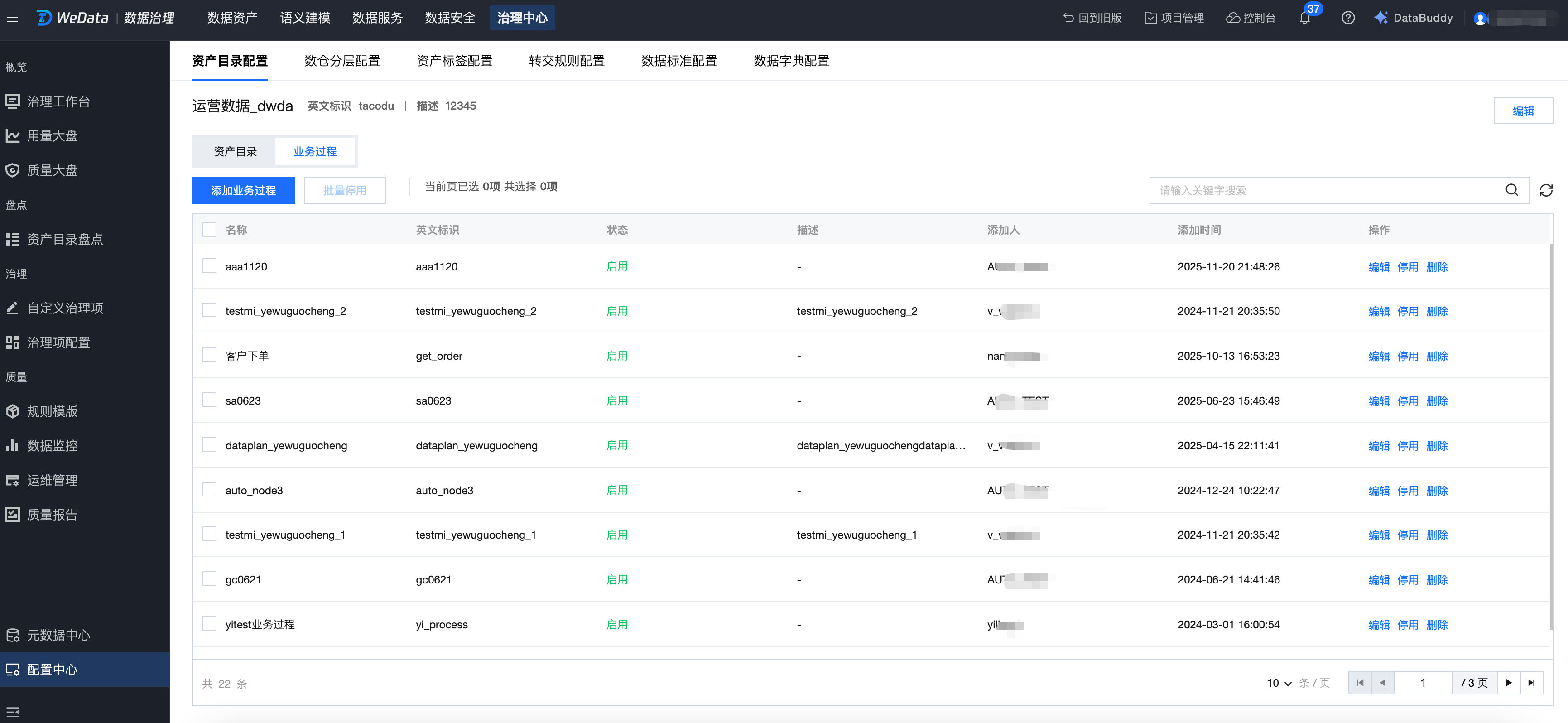 业务过程是指企业为实现特定业务目标而进行的一系列有序活动或任务。这些活动通常涉及多个部门或职能,并且需要使用、生成或修改数据。业务过程在数据资产目录中帮助识别数据的来源、流动和使用方式。