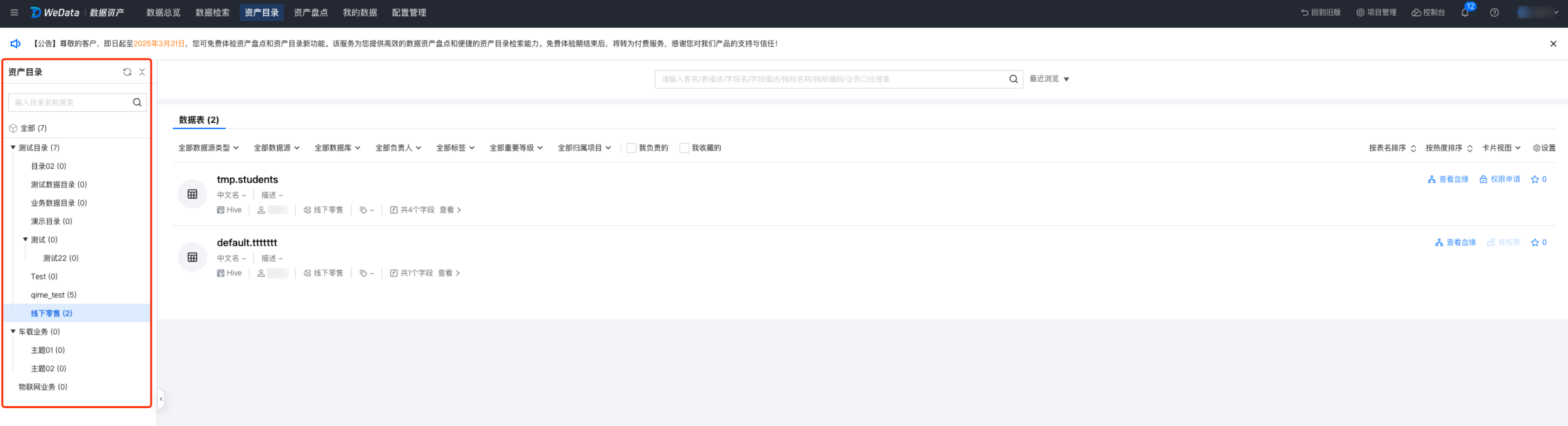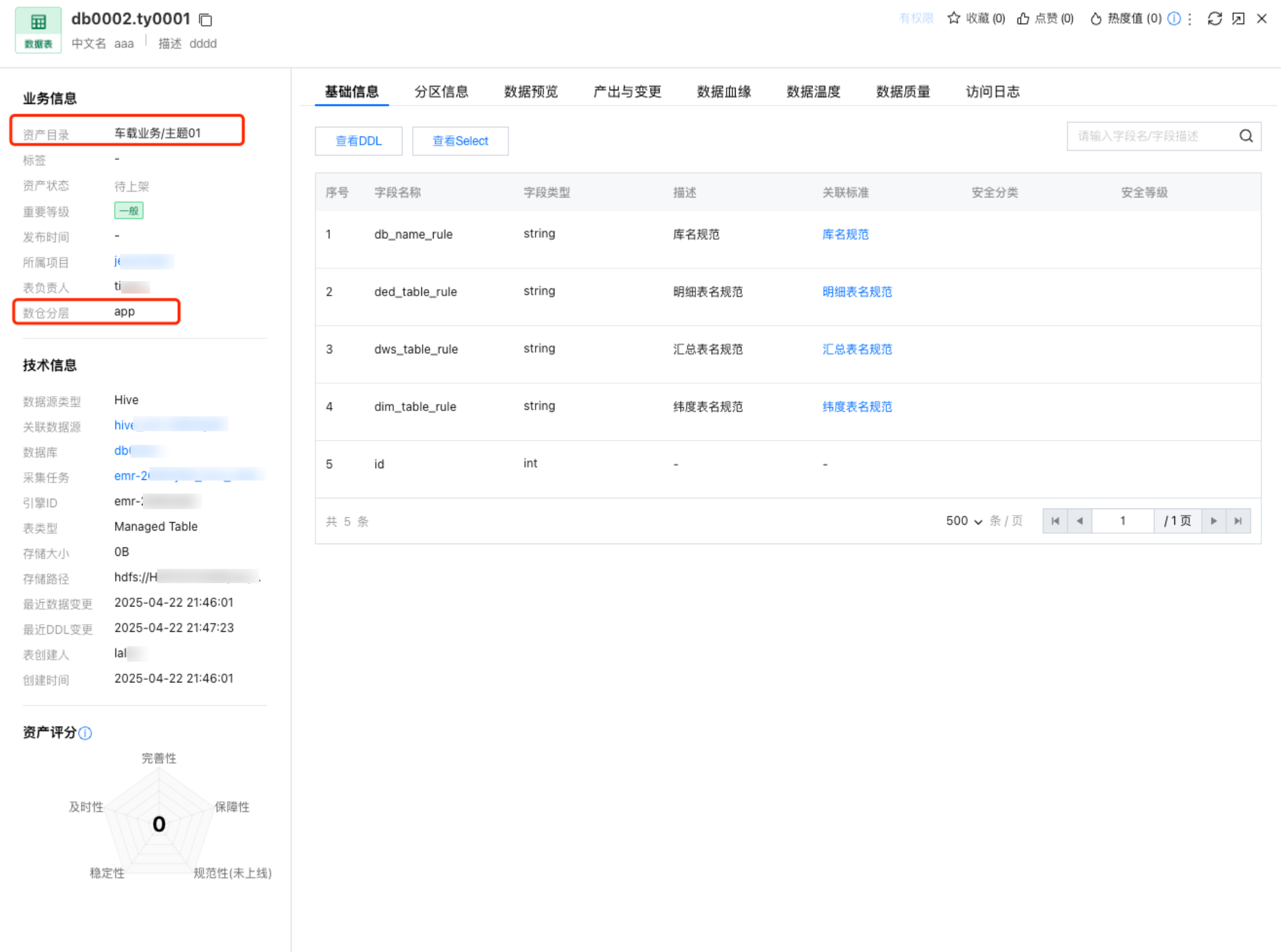 完成建表后,即可直接查看数据资产,从而减少事后盘点工作量。