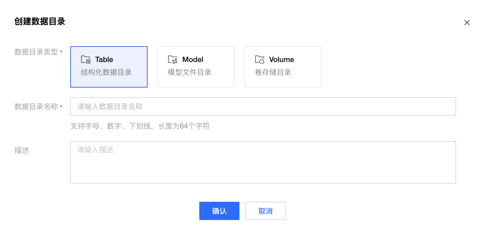 Schema 下的数据表创建,可以通过在 DLC 数据源中创建,或者在 WeData 中通过 create table 等语句创建;Model 可以在模型模块创建;Volume 支持在 Catalog 下的 Schema 下创建,同时进行文件的上传下载和预览。