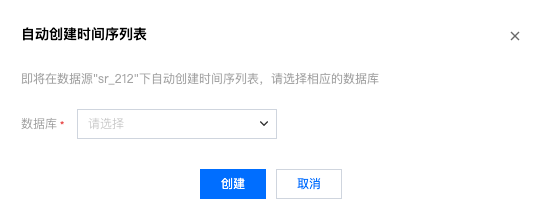 当选择自动创建后,需要用户在弹窗中指定数据库,确定后系统会自动在所选数据库下创建时间序列表。