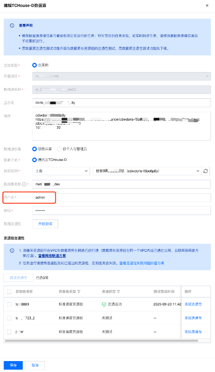 2. Doris 数据源和 TCHouse-D 数据源:Doris 内核需在2.1及以上版本。