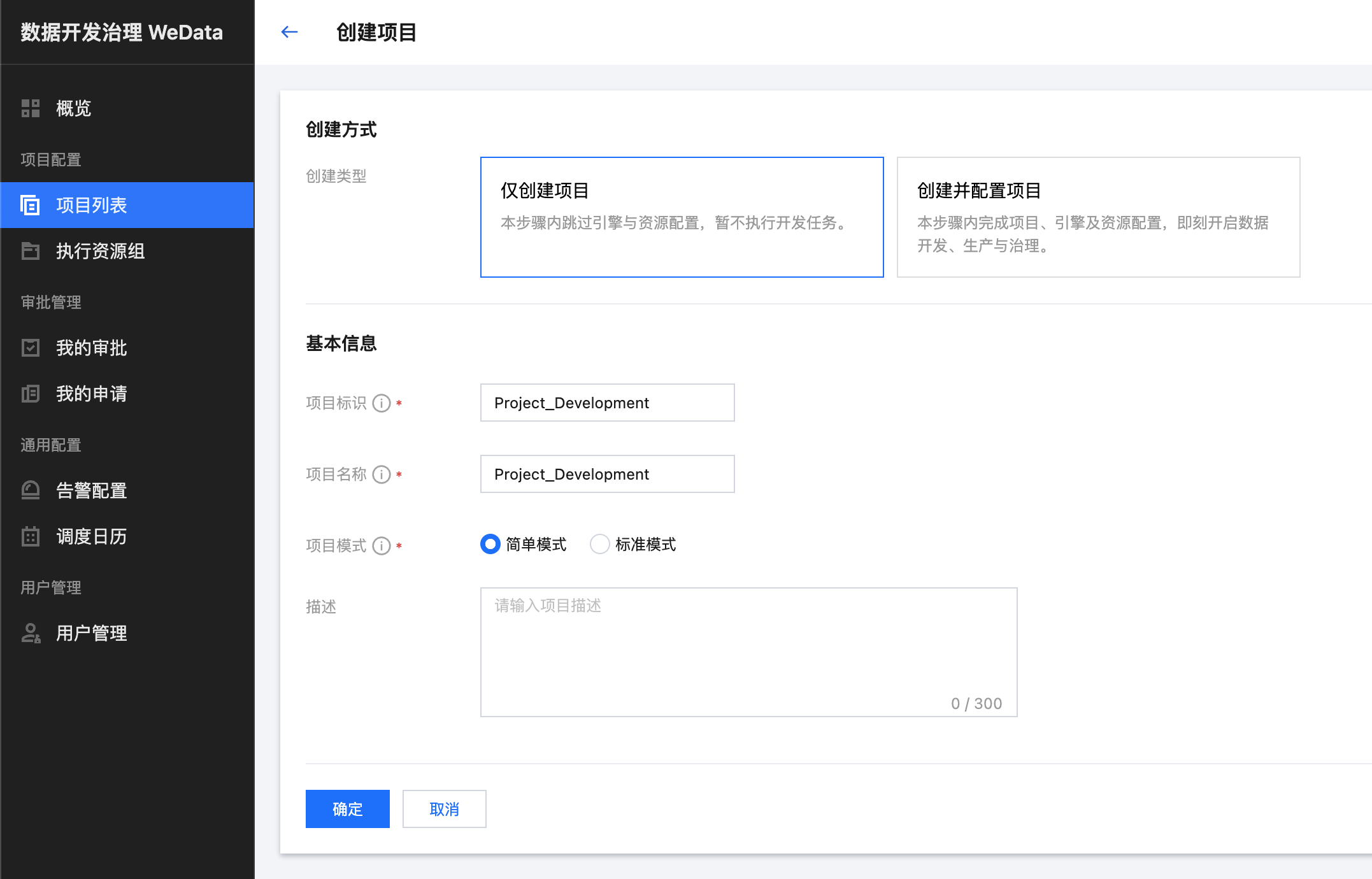2. 单击左侧菜单中的项目列表,创建源项目用作开发项目,目标项目用作生产项目。