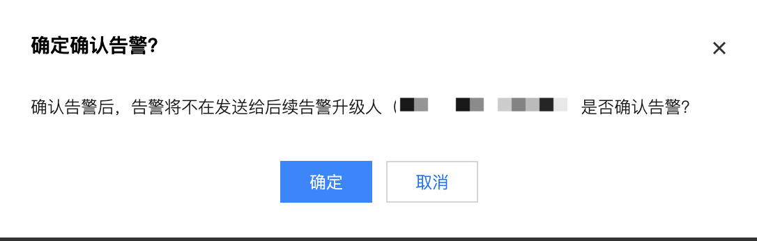 若告警设置中配置了告警升级人,操作栏中会有确认告警选项。单击确认告警后,告警信息将不再发送给告警升级人。