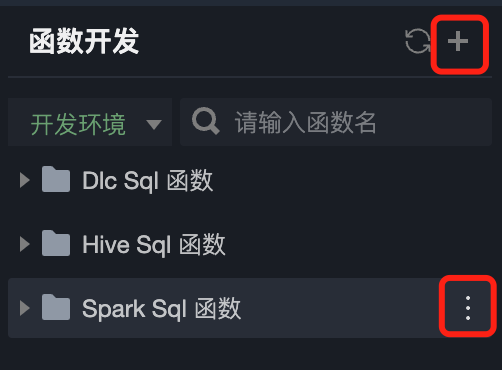 选择新建 Hive SQL 函数、Spark SQL 函数或 DLC SQL 函数,直接在对应函数类型下单击目标路径右侧