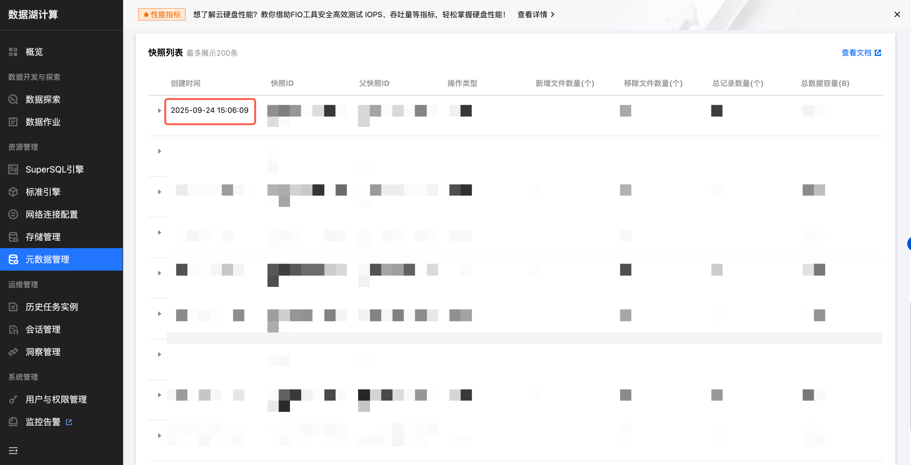 | metadata 元文件大小 | 采集表 metadata.json 元文件大小,当该文件大小超过10M将判定为需要优化 | append/merger into/upsert | 建议开启 |
