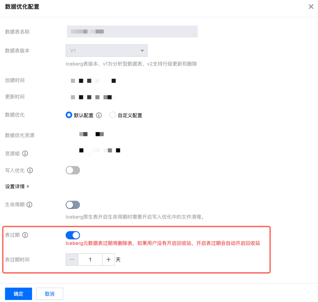 如果在创建 Iceberg 表时通过命令配置表过期存在不合法行为(如配置的过期时间不在规定范围内),那么将导致数据表创建成功但表配置不生效的结果。