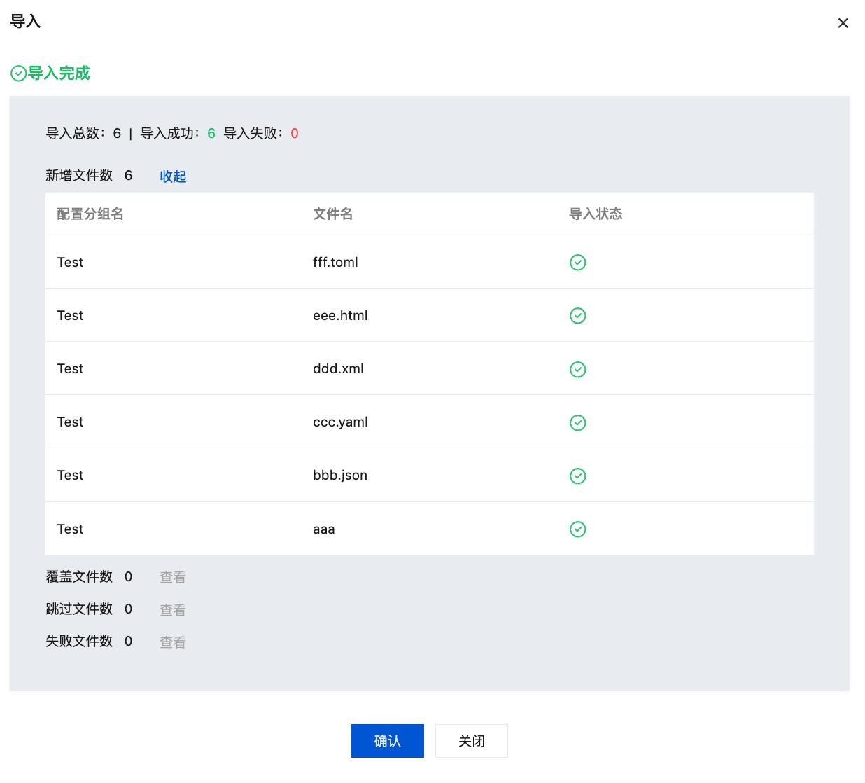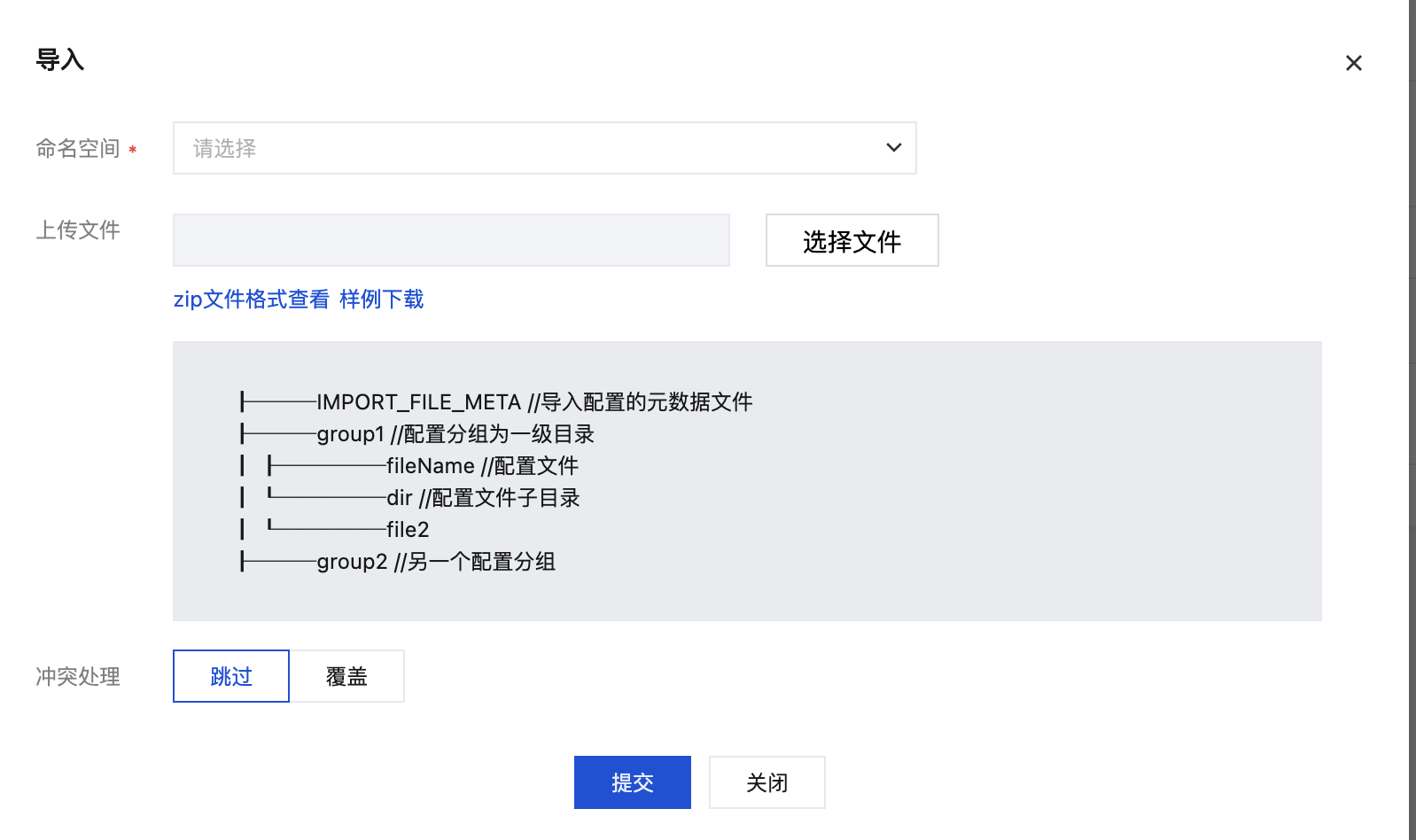 北极星配置中心支持以命名空间维度且按照指定文件格式批量导入配置文件。