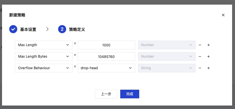 填值:根据业务情况填入处理方式,如drop-head,表示 Queue 达到最大长度或最大字节限制时,将会删除队列头部的旧消息,以达到降低堆积的目的。