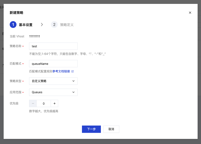 数值:根据堆积情况填入数值,如1000,表示 Queue 中最多允许1000条消息。
