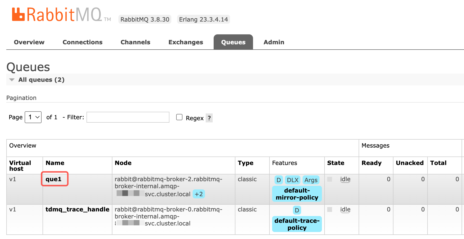 2. 单击 Queue 页签,找到需要清空消息的 Queue,并单击进入 Queue 详情。