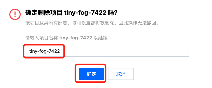 3. 在确认弹窗中,输入项目名称,点击“确认”后即可销毁项目。