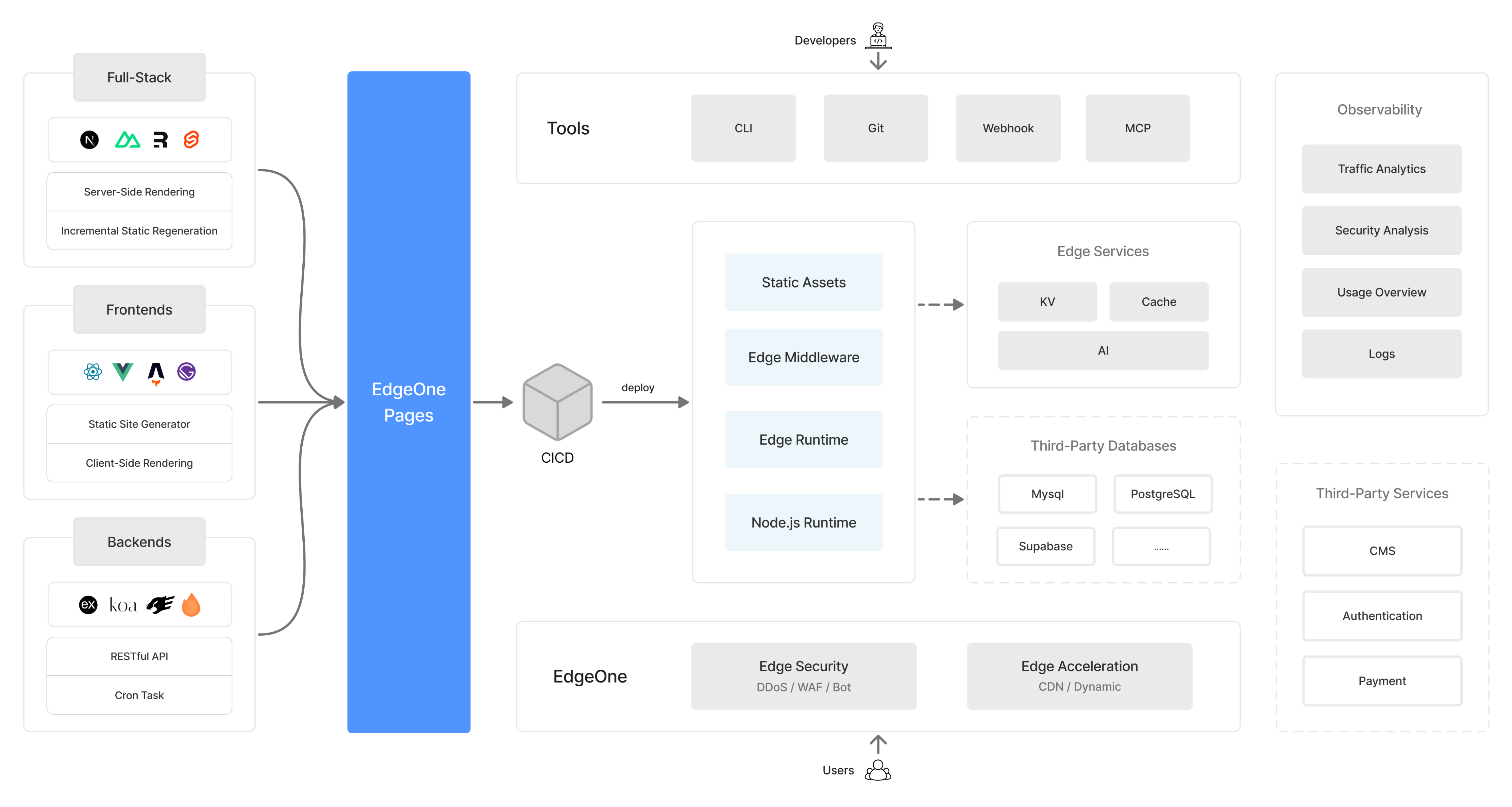 EdgeOne Pages 是基于 Tencent EdgeOne 基础设施打造的全栈开发部署平台,提供从前端页面到动态 API 的无服务器部署体验,适用于构建营销网站、AI 应用等现代 Web 项目。通过边缘网络全球加速,确保应用获得快速、稳定的访问体验。