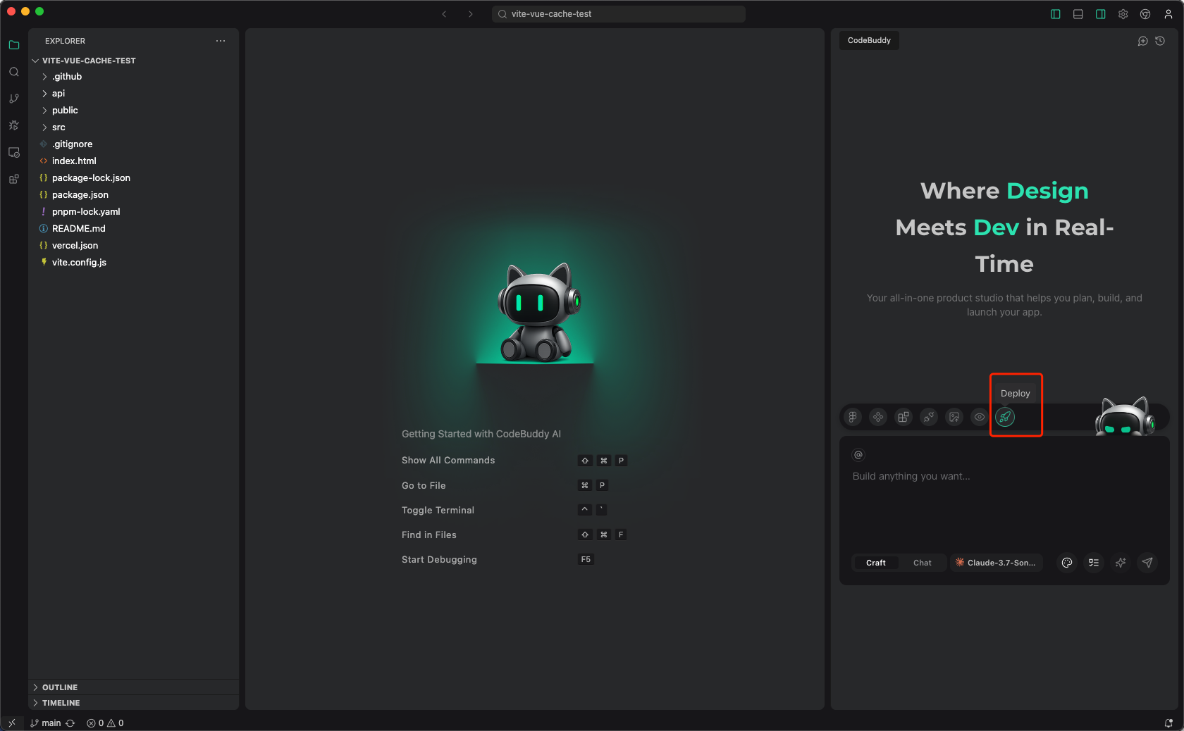 接下来便可以通过自然语言和 CodeBuddy 沟通,完成项目的前后端需求。同时在开发过程中,您可以根据项目情况随时通过自然语言或 Deploy 按钮进行项目构建与部署。