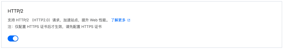 EdgeOne Pages 支持客户端以 HTTP/2 协议发起请求。HTTP/2(即 HTTP 2.0,超文本传输协议第2版),是 HTTP 协议的第二个主要版本,能有效减少网络延迟,提高站点页面加载速度。