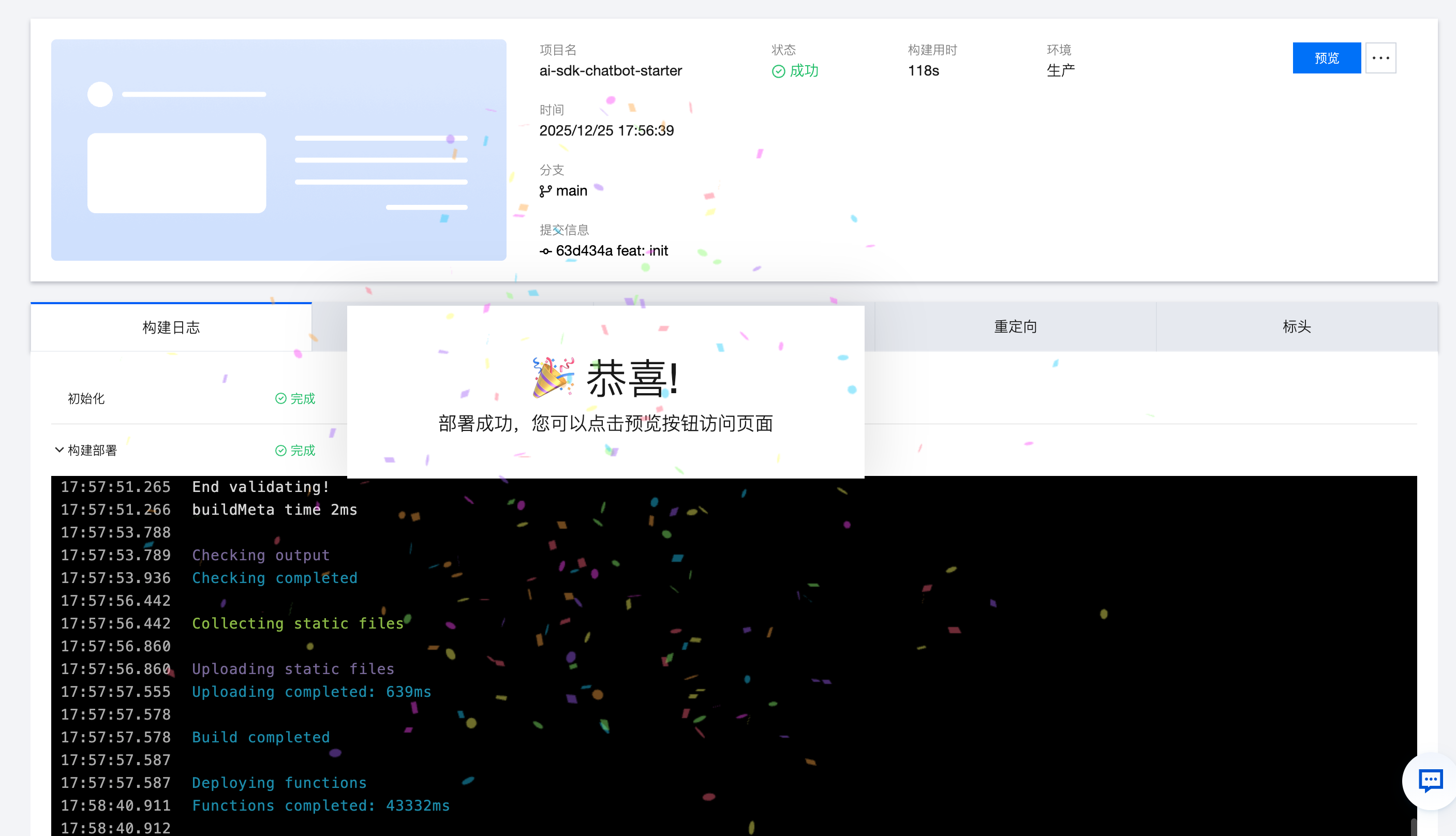 以上就是 AI SDK 封装调用方式的完整集成过程。从下载模板、配置环境变量,到 AI SDK 封装调用,完成了 AI 对话功能的实现链路。