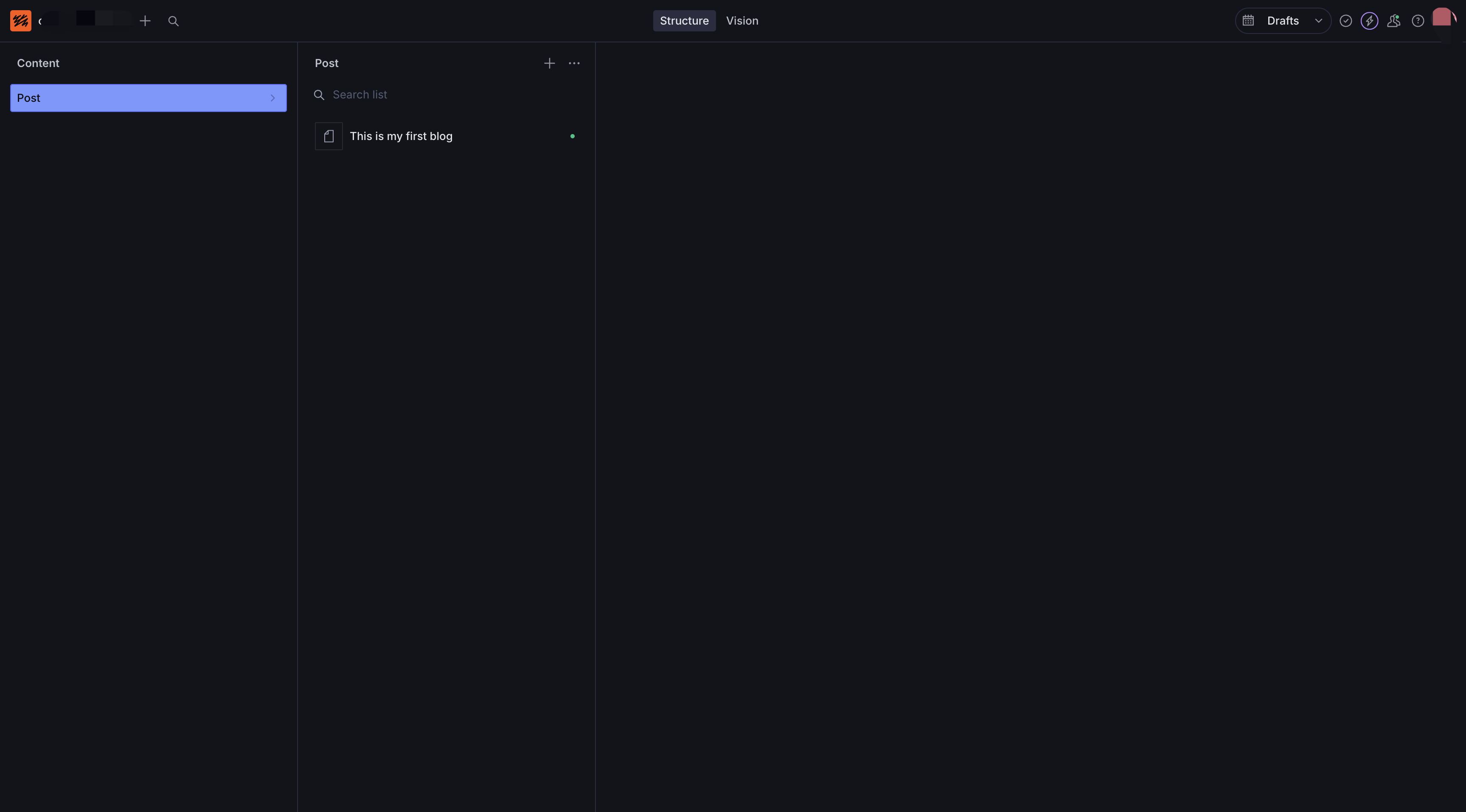 https://my-blog.sanity.studio 访问您的 Sanity Studio。现在,您之前通过 http://localhost:3333 访问的本地 Studio 界面,已经可以通过这个在线地址访问了。接下来,您可以在线 Studio 中添加内容: