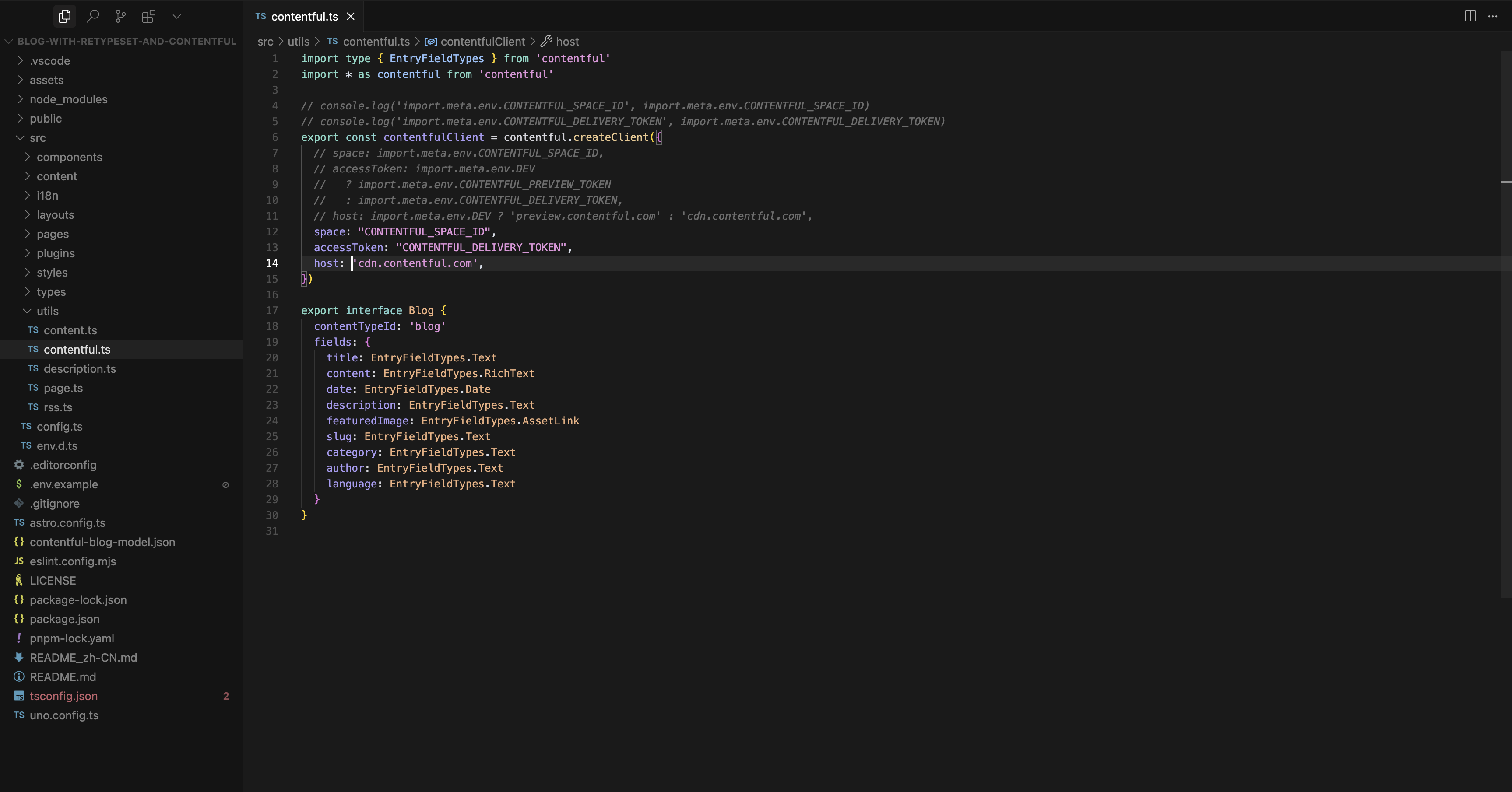 src/util/contentful.js 文件,填入您的 Space ID 和 Access Token。
