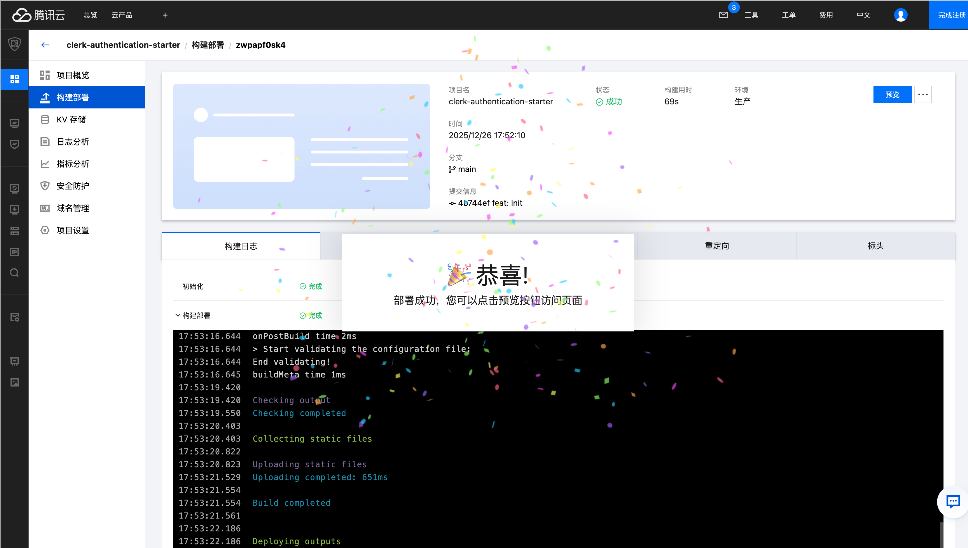 您可以直接使用 EdgeOne Pages 的 Clerk 前端模板,点击