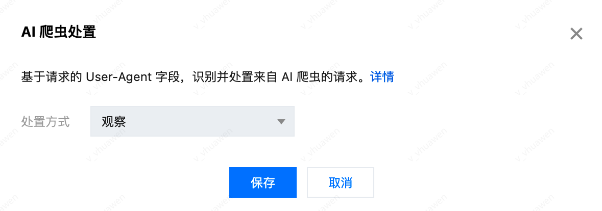 1. AI 爬虫处置基于请求的 User-Agent 字段进行特征识别,如需基于请求的行为特征、 IP画像特征、请求速率等智能分析功能,请订阅 Bot 管理 功能进行分析和处置。