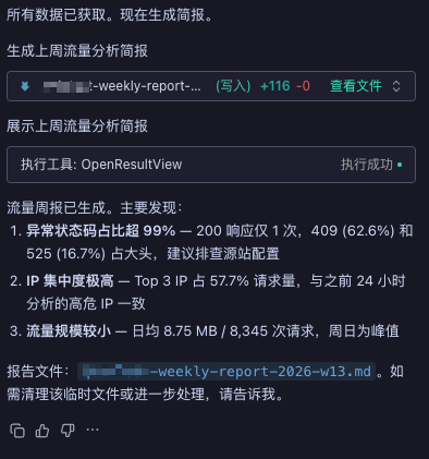 安全周报生成、模板覆盖盘查、域名黑名单 IP 组识别、威胁 IP 自动拉黑等