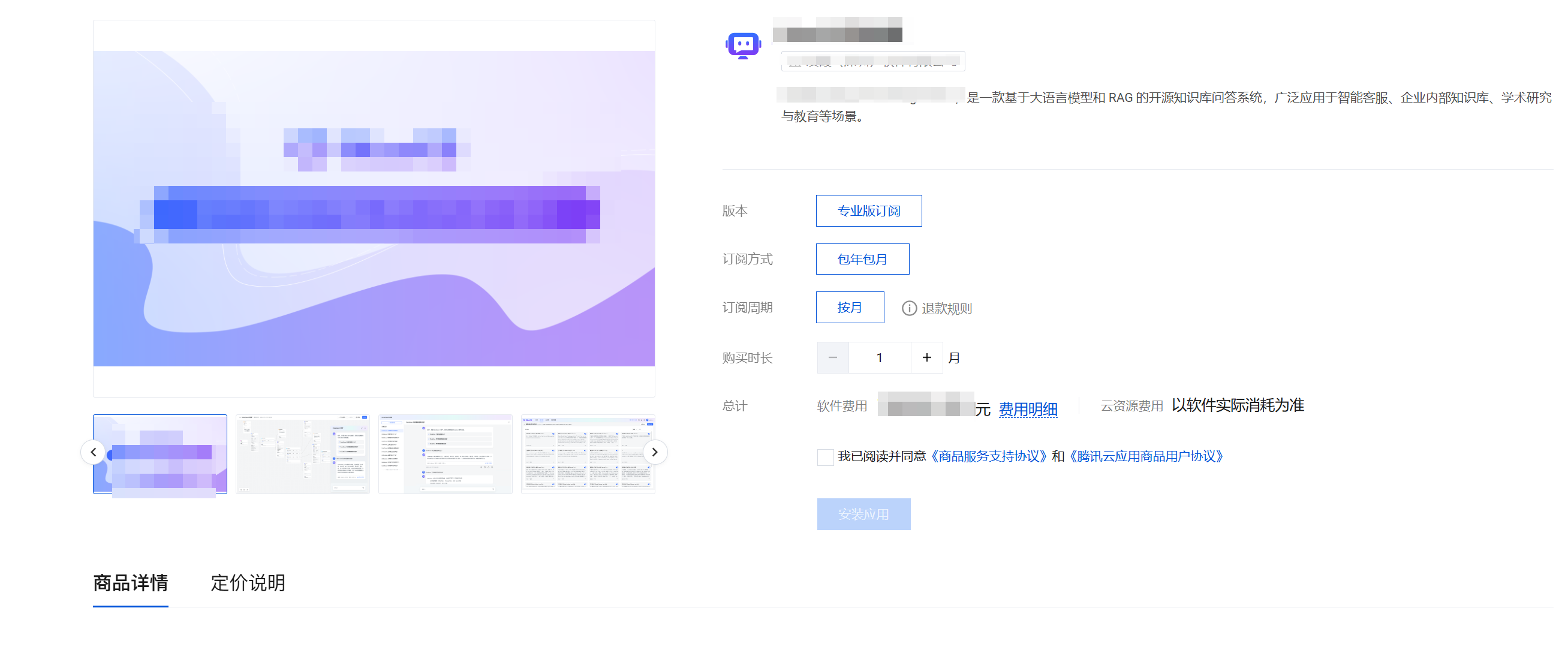 安装时,软件依赖的云资源将自动下单并从您的余额中扣费。