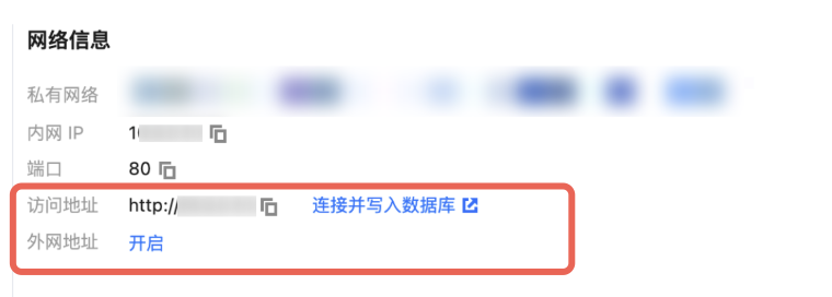 4. 在网络信息区域,可获取实例的访问地址或外网地址,