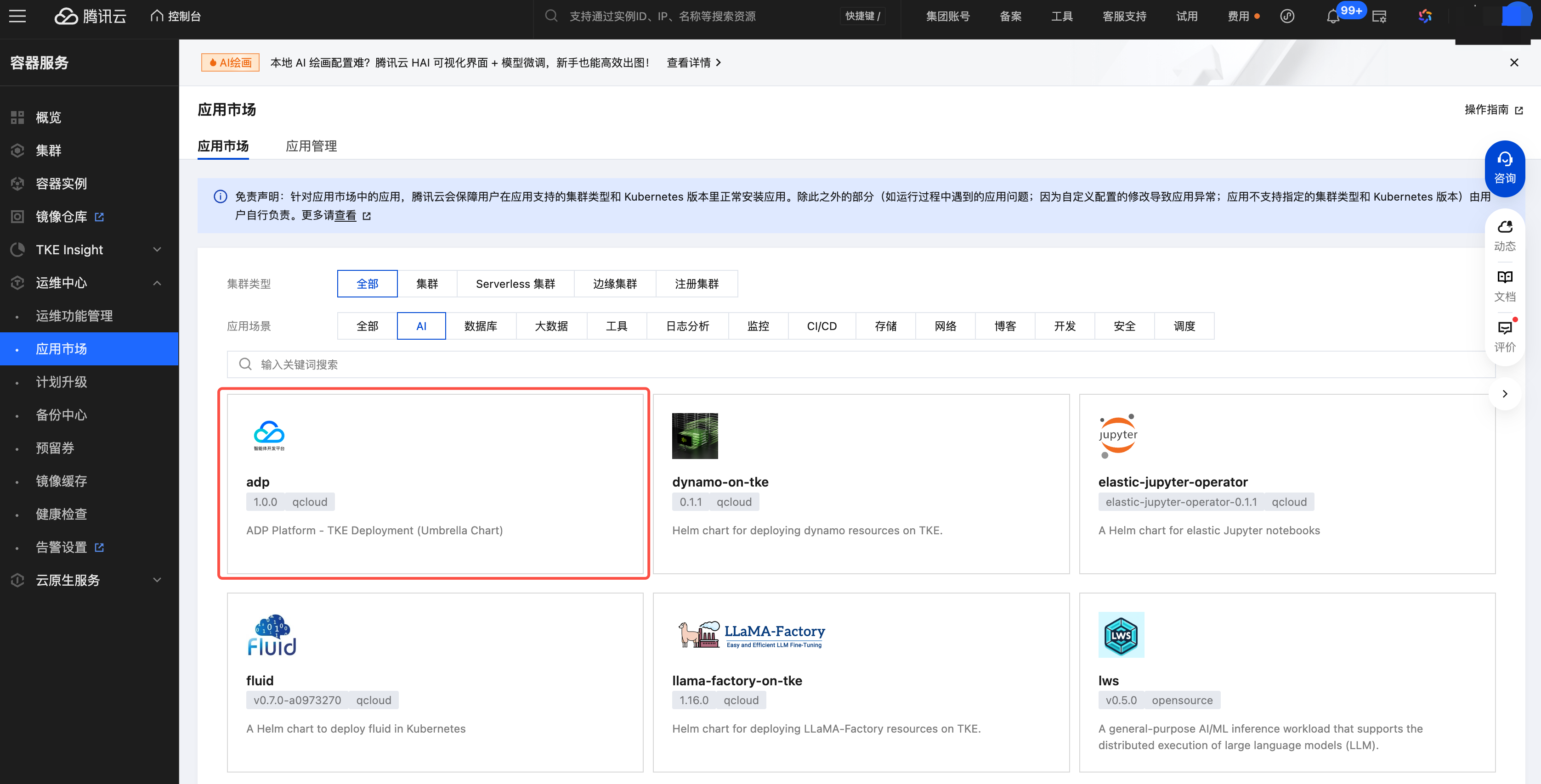 1. 在 TKE 中部署 Tencent Cloud ADP