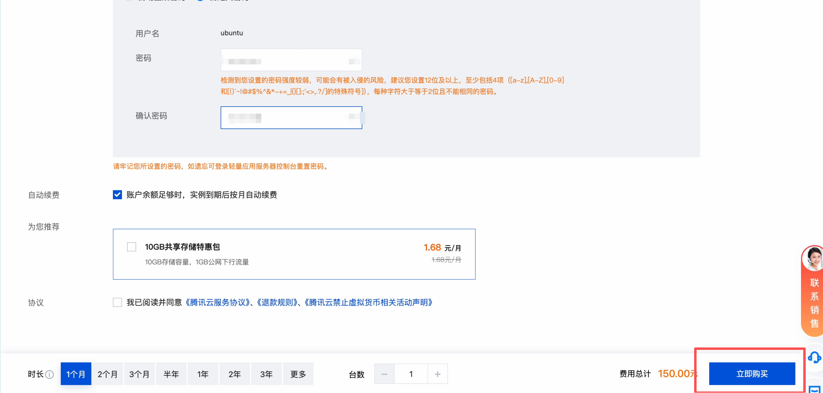 单击立即购买,核对配置信息后,单击提交订单,并根据页面提示完成支付。系统将进行自动部署,整个过程将持续 3-5 分钟。