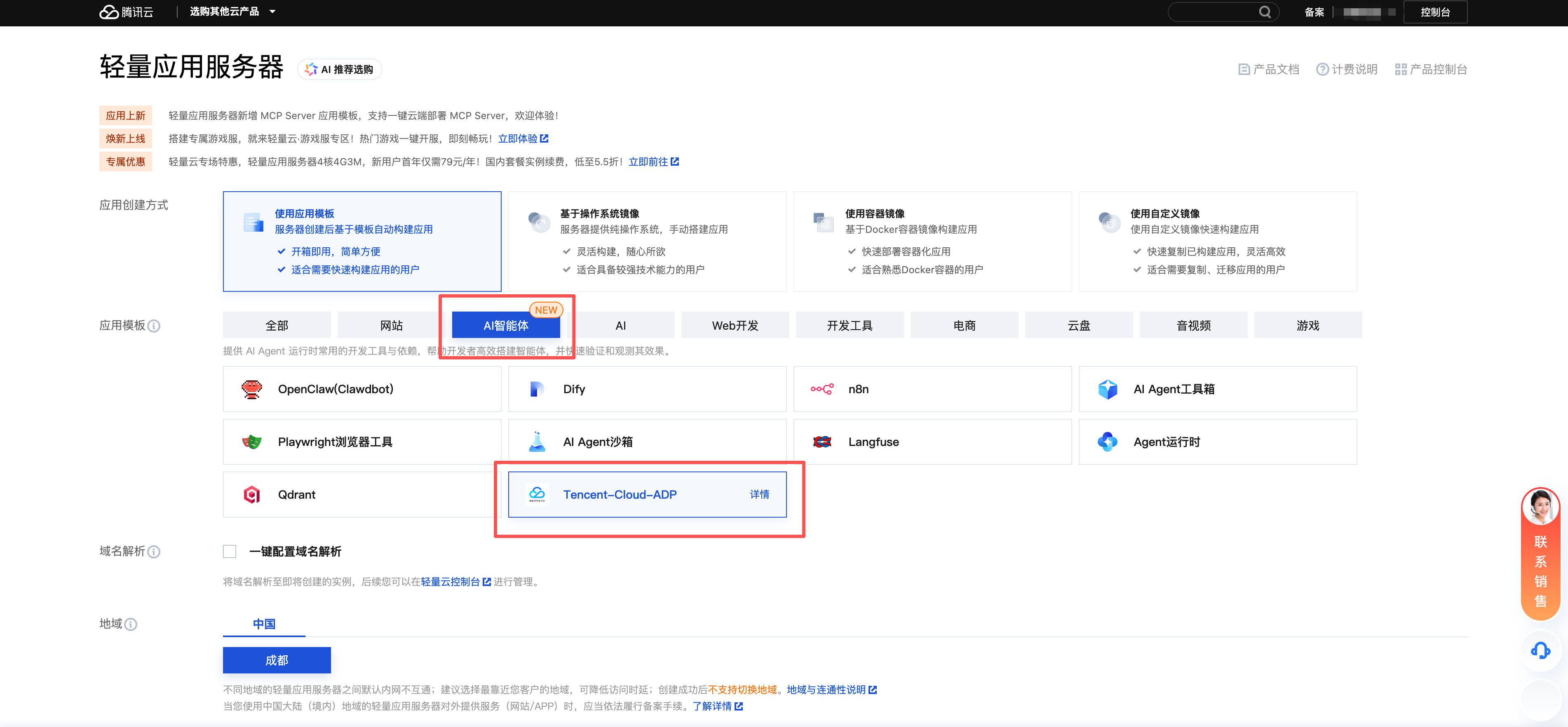 1. 在 Lighthouse 中部署 Tencent Cloud ADP