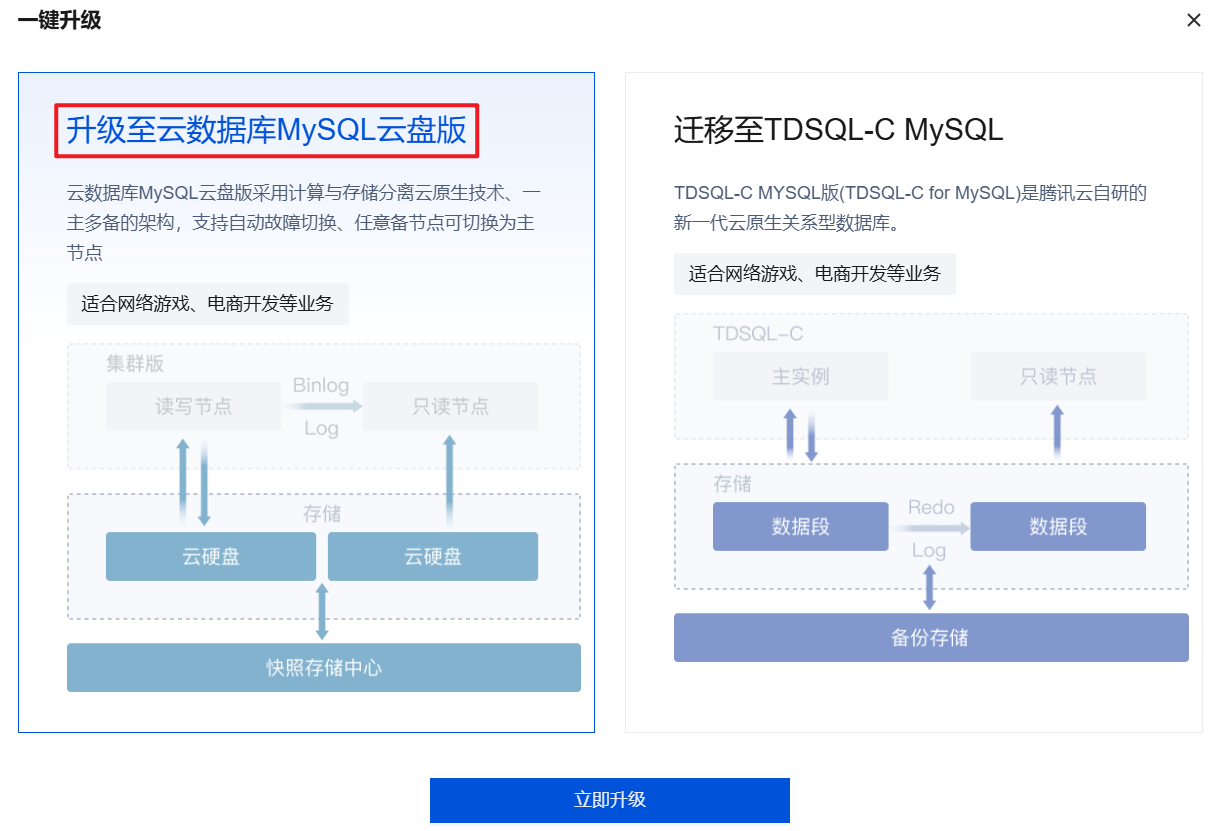 本文为您介绍迁移或直接升级至云数据库 MySQL 云盘版的方法。