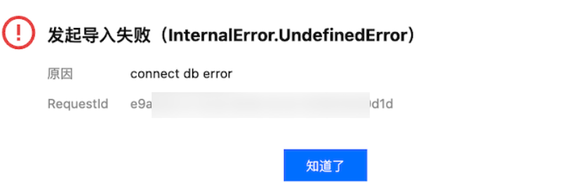导入 SQL 文件失败,提示“发起导入失败(InternalError.UndefinedError)”