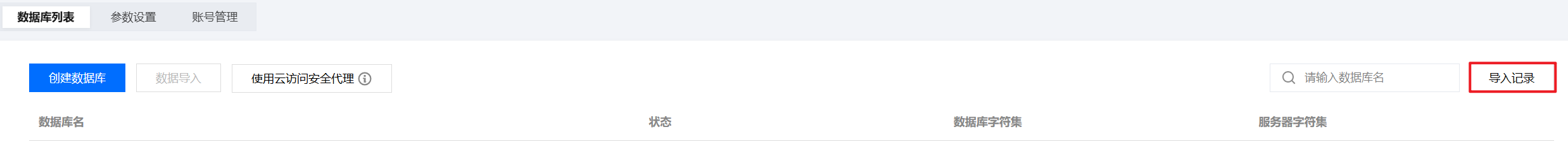 6. 任务执行后,文件导入的状态(是否导入成功),需要从导入记录中查询。您可在数据库列表右侧单击导入记录,跳转至最近导入记录页面进行查询。