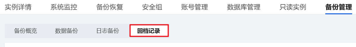 3. 选择备份管理,在备份管理页选择回档记录页。