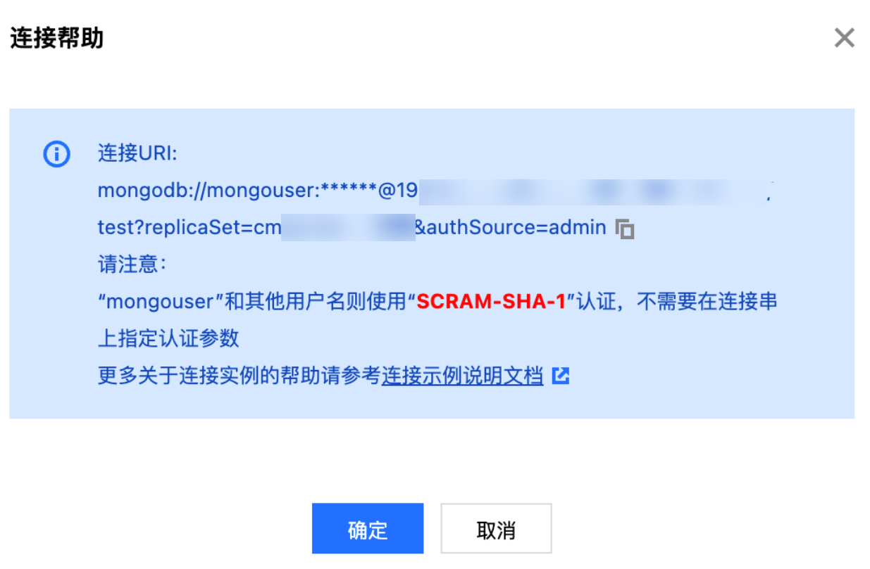 自 MongoDB 3.6 版本起,新实例将默认创建名为 mongouser 的用户。该账号及后续在控制台创建的所有账号,均统一使用 SCRAM-SHA-1 认证机制进行身份验证。