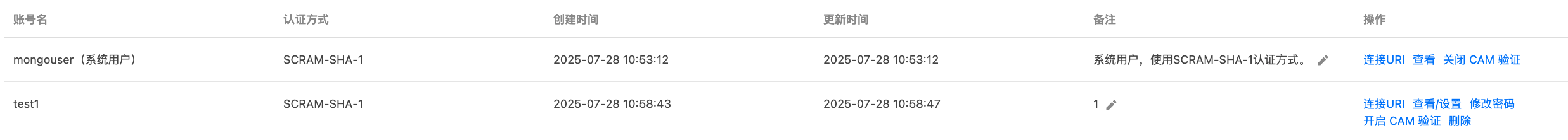 在云数据库 MongoDB 的账号管理界面,您可通过集成化的操作入口,集中完成以下核心管理任务: