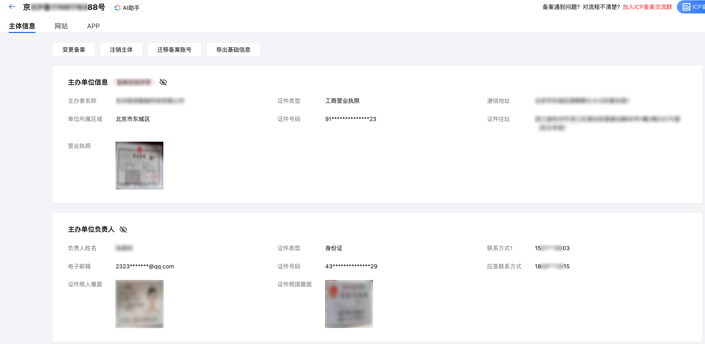 ,即可查询到主体备案信息,如下图所示: