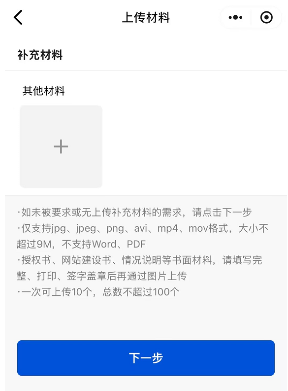 步骤四:上传补充材料